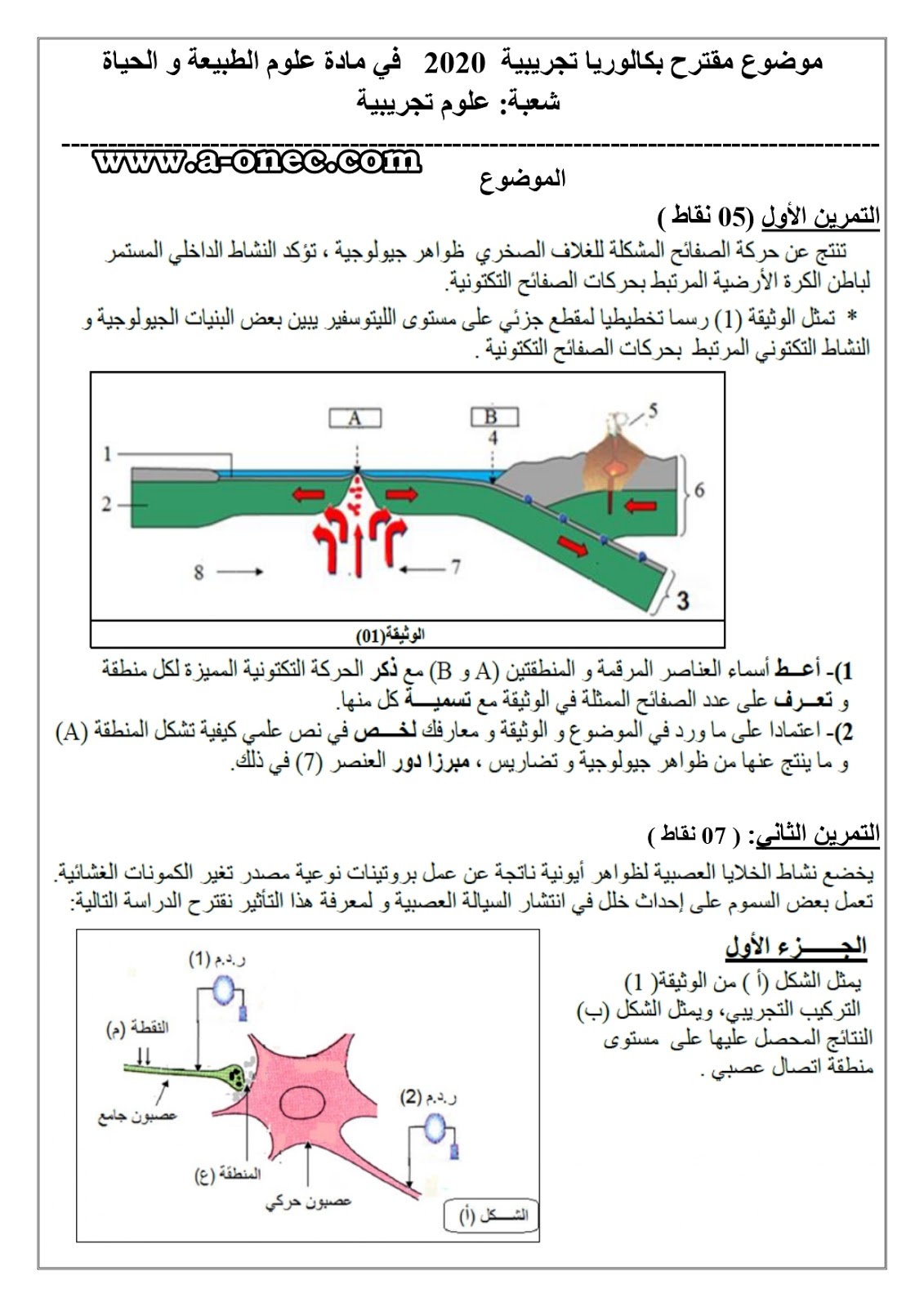 موضوع مقترح بكالوريا مع التصحيح 2020 في مادة علوم الطبیعة و الحیاة شعبة علوم تجریبیة