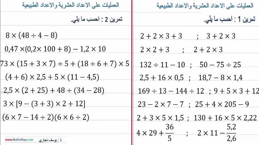 العمليات الحسابية علي الاعداد العشرية 4ب Youtube