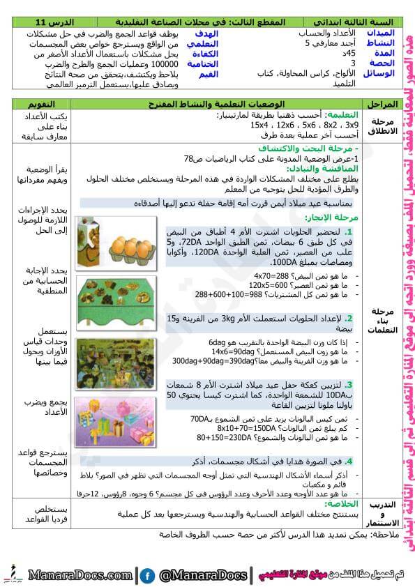 مذكرات السنة الثالثة 3 ابتدائي مادة الرياضيات درس اجند معارفي 5 Word