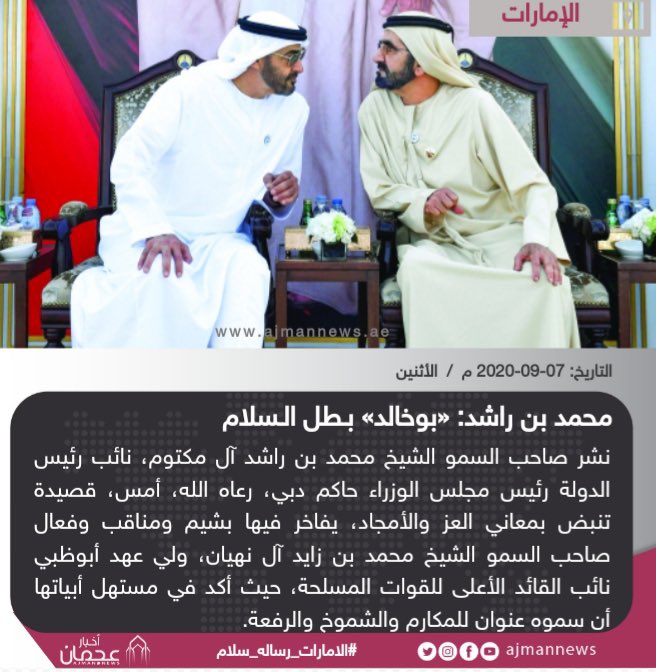 أخبار عجمان محمد بن راشد بوخالد بطل السلام أخبار الإمارات الإمارات الامارات رساله سلام